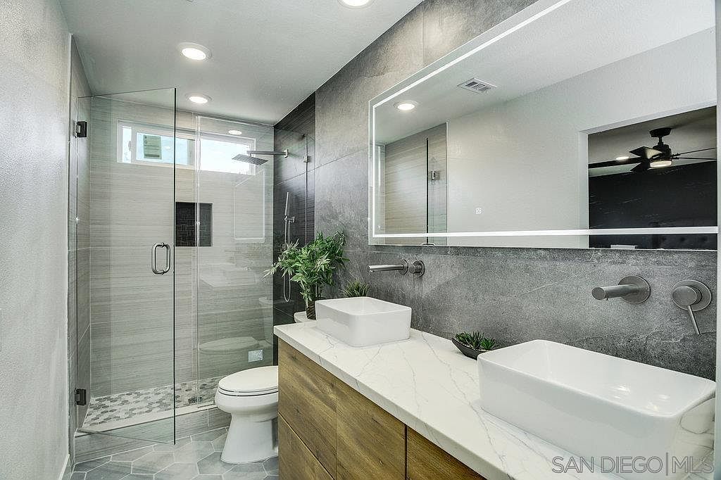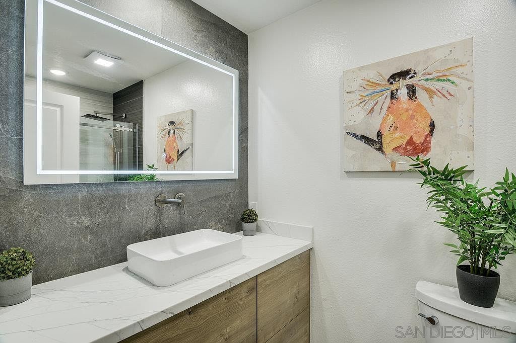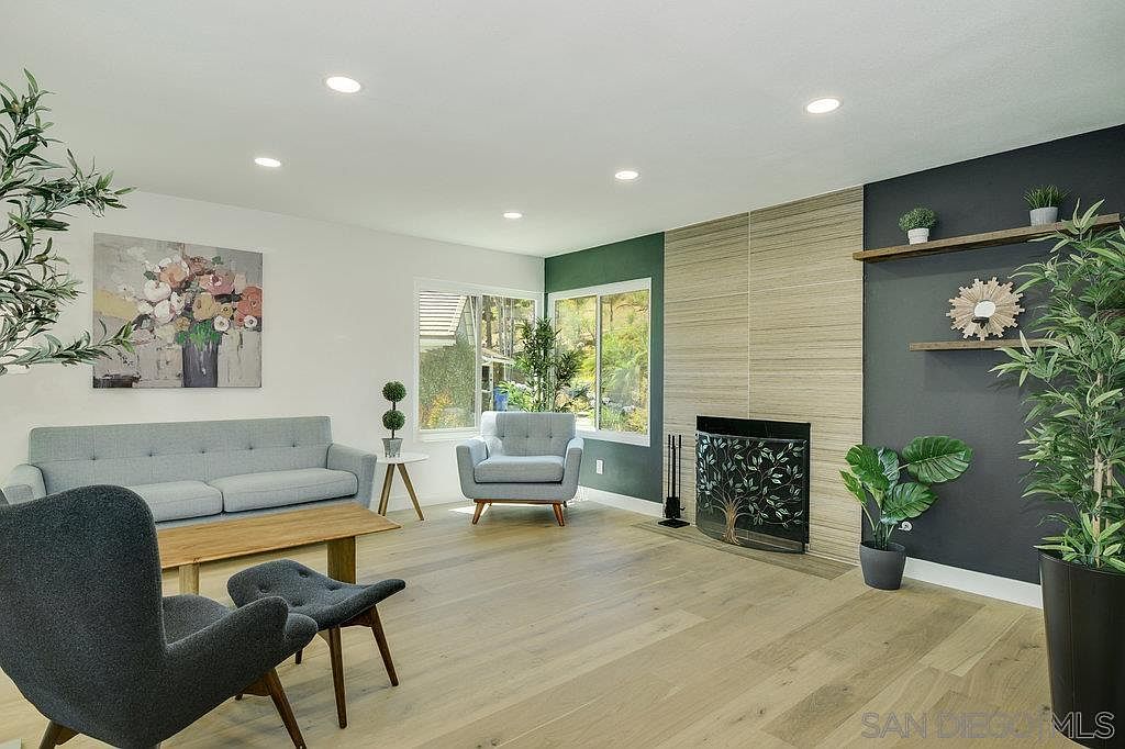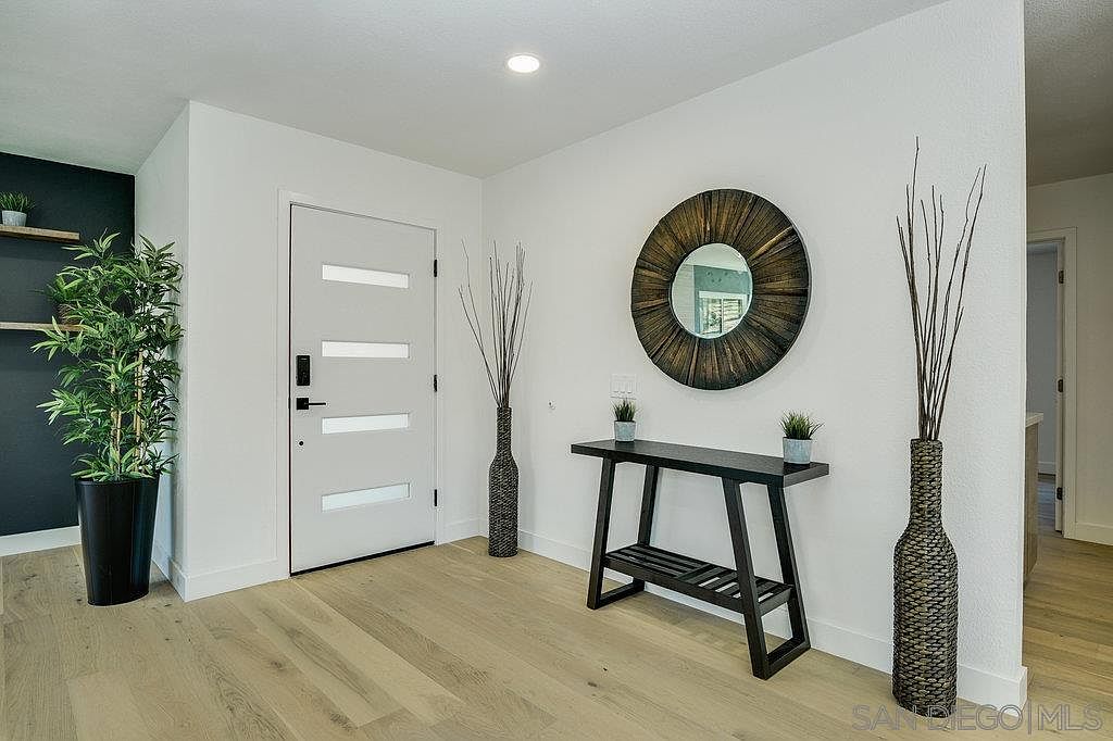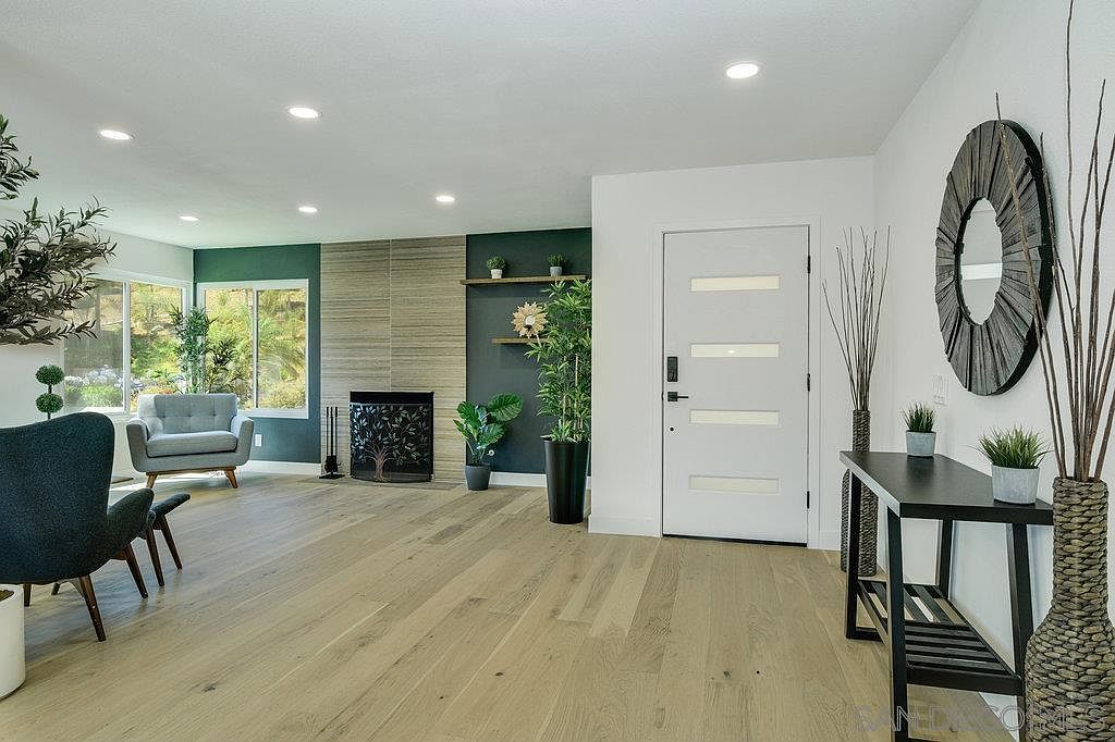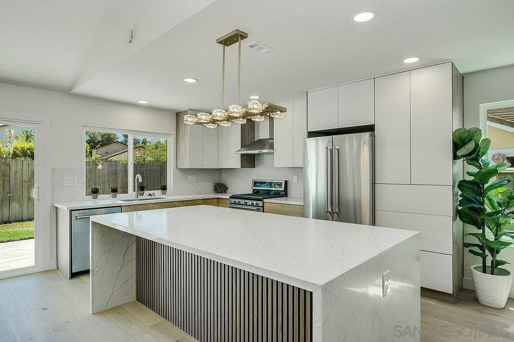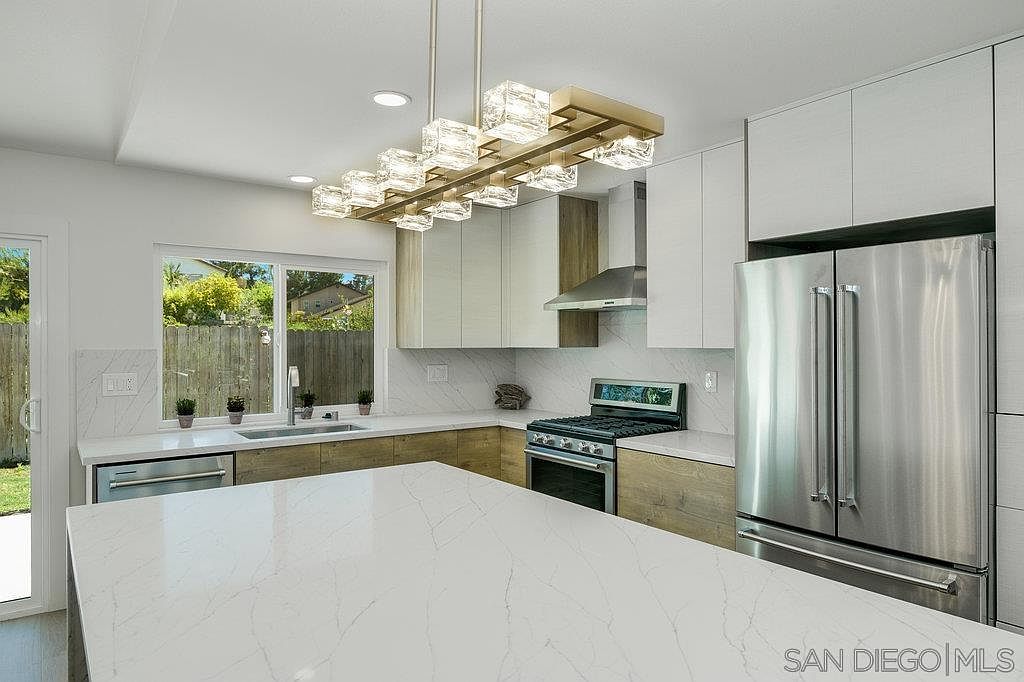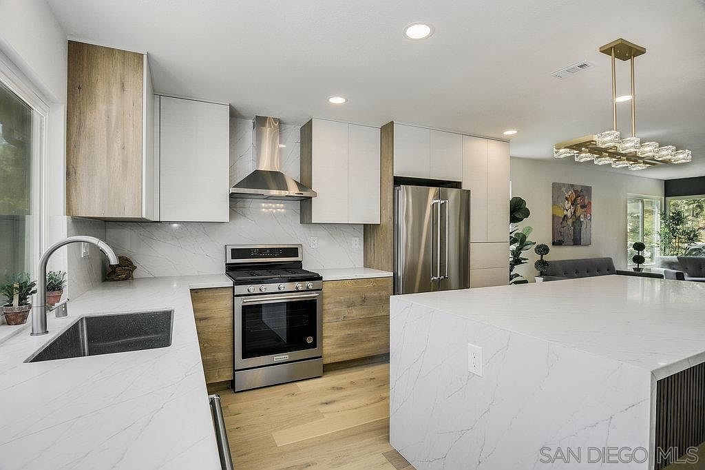 Fully remodeled modern masterpiece. This desirable single story home w/modern open floor plan, nestled in a very private cul-de-sac, boasts a European style kitchen w/ oversized island, NEW KitchenAid appliance suite, European oak flooring, imported Italian tiles, LED mirrors and lighting. New dual pane windows and custom entry door w/smart lock. You will have access to some of the best, award winning schools in San Diego. Your dream home awaits. Welcome home!