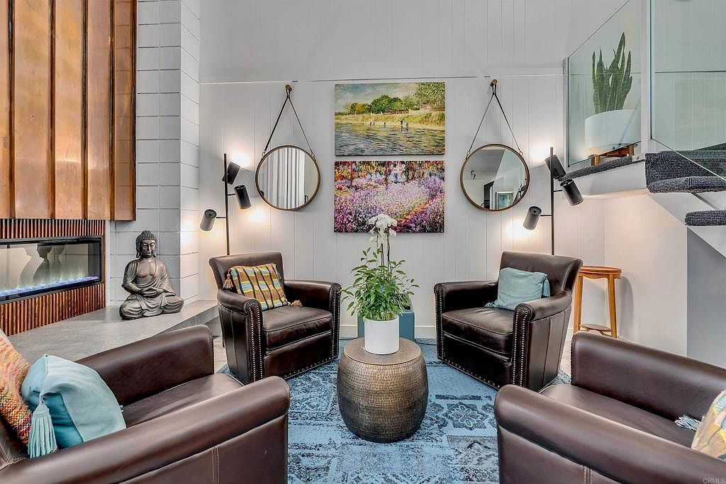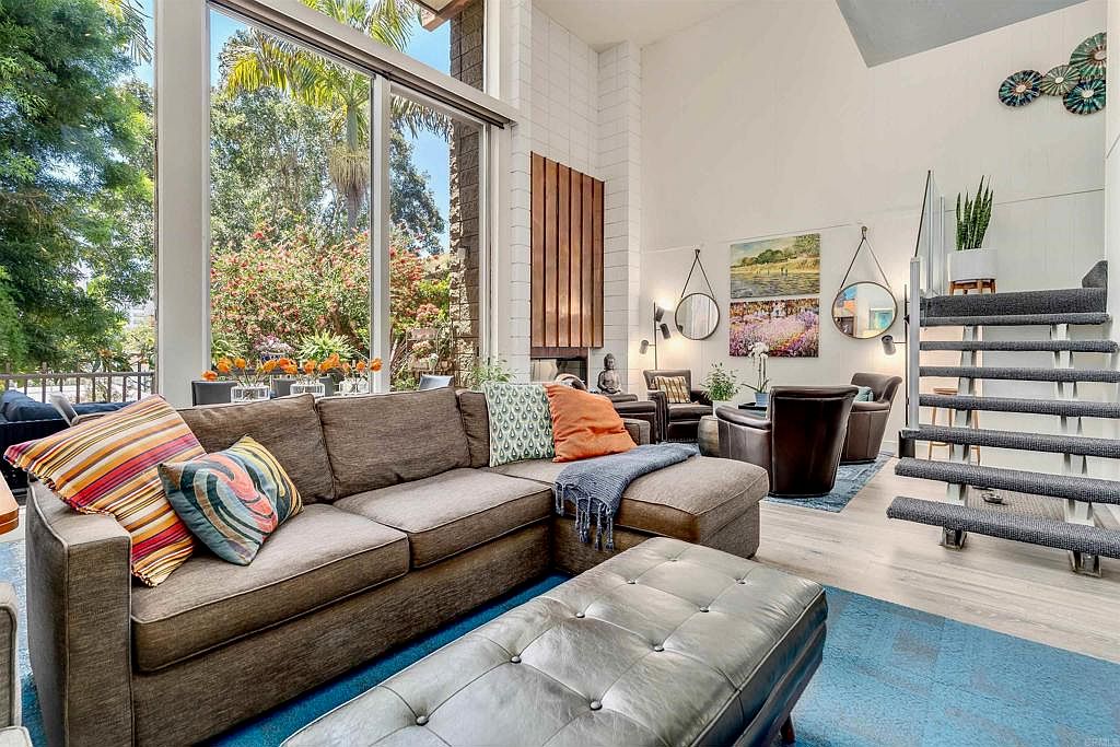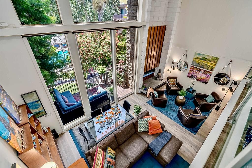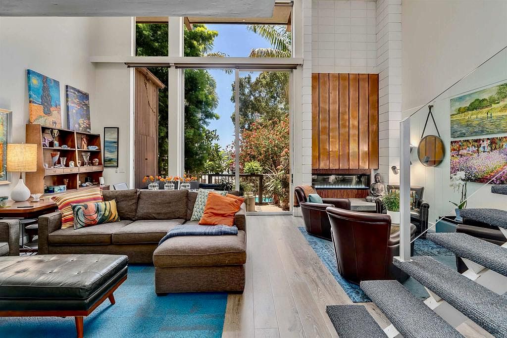 Nestled within the La Jolla Racquet Club off Torrey Pines Road, this architectural treasure is part of a select group of only six distinctive floor plans - a generous 3-bedroom (West of the 5) residence with a view of the glistening pool. The third bedroom, a loft currently utilized as an office, boasts ample closet space and a full bath with a shower. Additionally, the property includes one designated garage space in a private six-car garage near the unit and a second space in the main garage. Remodeled in 2019, this townhome seamlessly marries timeless design with contemporary upgrades, offering a perfect blend of classic mid-century charm and modern coastal living. Amidst verdant, peaceful landscaping, this home provides both privacy and tranquility, just a brief walk away from La Jolla Shores Beach. Enjoy a plethora of resort-style amenities such as a pool, spa, tennis courts, and clubhouse, all within minutes of the Villages boutique shops, upscale dining, UCSD, and major freeways. The property also features covered parking and two tennis courts, making it an ideal retreat for those seeking the ultimate in coastal living. For added convenience, there is storage in the foyer behind a mirror, a spacious closet on the deck, and a storage locker. The unit is equipped with a washer and dryer, with easy access from Torrey Pines Road to one of your covered parking spots. Take the stairs to the right for upstairs access or to the left for your front door. To enhance the cozy ambiance of the living room, there is a delightful electric fireplace that radiates warmth and can be illuminated with colored lights. Sellers are open to concessions, allowing you to experience the epitome of luxury living in this remarkable La Jolla residence.