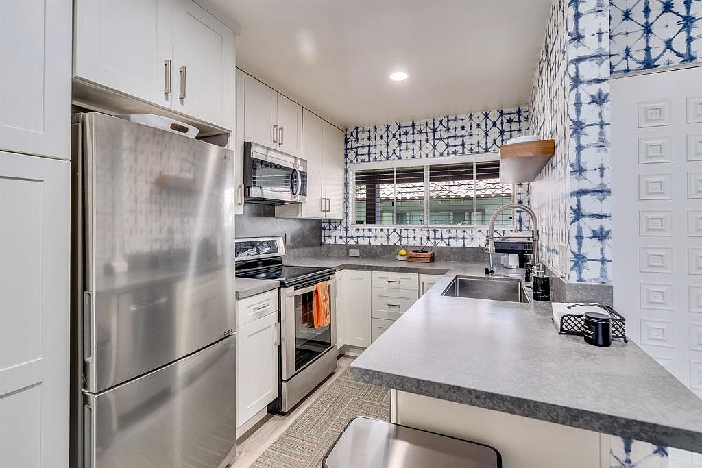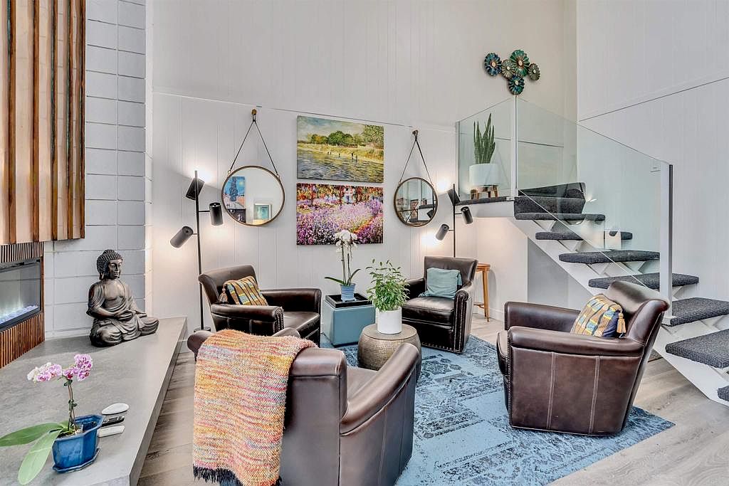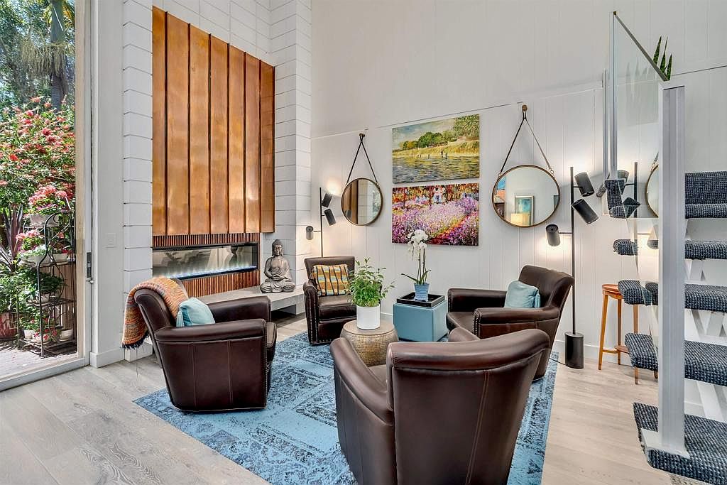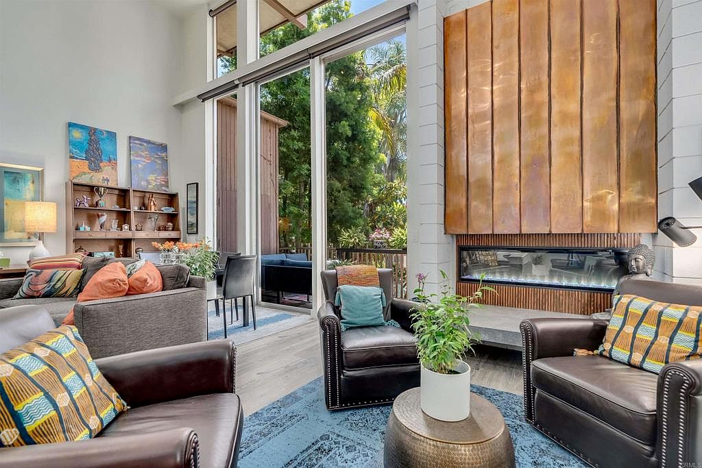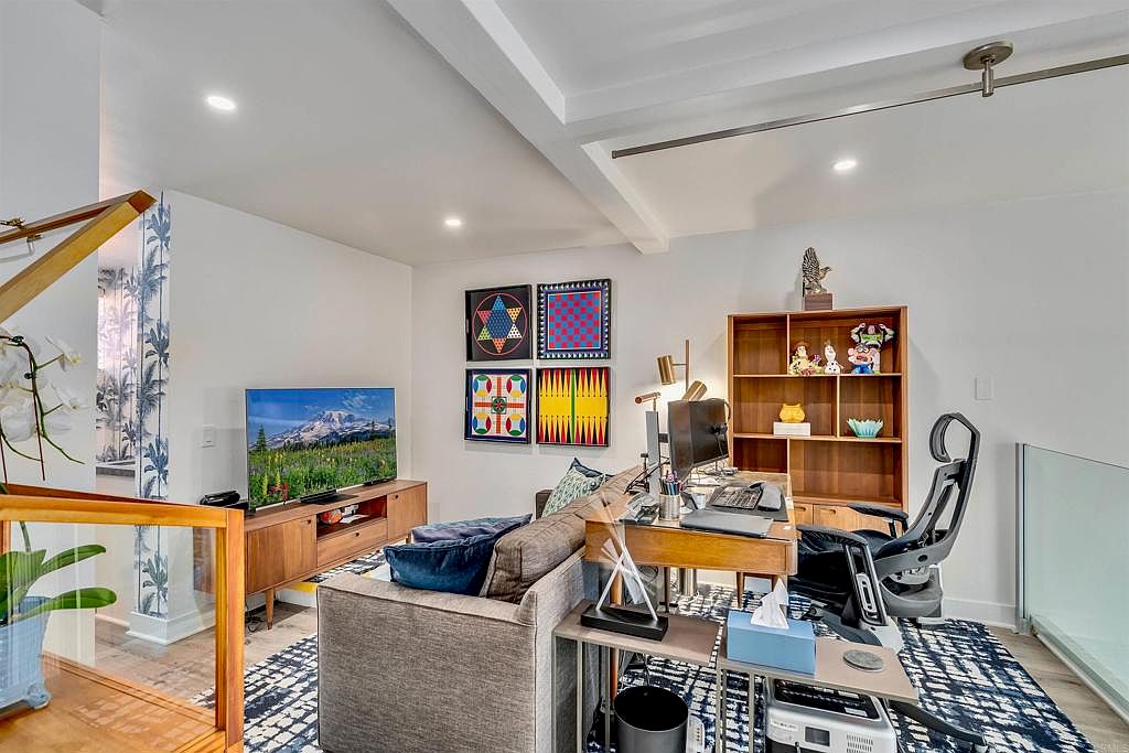 Nestled within the La Jolla Racquet Club off Torrey Pines Road, this architectural treasure is part of a select group of only six distinctive floor plans - a generous 3-bedroom (West of the 5) residence with a view of the glistening pool. The third bedroom, a loft currently utilized as an office, boasts ample closet space and a full bath with a shower. Additionally, the property includes one designated garage space in a private six-car garage near the unit and a second space in the main garage. Remodeled in 2019, this townhome seamlessly marries timeless design with contemporary upgrades, offering a perfect blend of classic mid-century charm and modern coastal living. Amidst verdant, peaceful landscaping, this home provides both privacy and tranquility, just a brief walk away from La Jolla Shores Beach. Enjoy a plethora of resort-style amenities such as a pool, spa, tennis courts, and clubhouse, all within minutes of the Villages boutique shops, upscale dining, UCSD, and major freeways. The property also features covered parking and two tennis courts, making it an ideal retreat for those seeking the ultimate in coastal living. For added convenience, there is storage in the foyer behind a mirror, a spacious closet on the deck, and a storage locker. The unit is equipped with a washer and dryer, with easy access from Torrey Pines Road to one of your covered parking spots. Take the stairs to the right for upstairs access or to the left for your front door. To enhance the cozy ambiance of the living room, there is a delightful electric fireplace that radiates warmth and can be illuminated with colored lights. Sellers are open to concessions, allowing you to experience the epitome of luxury living in this remarkable La Jolla residence.
